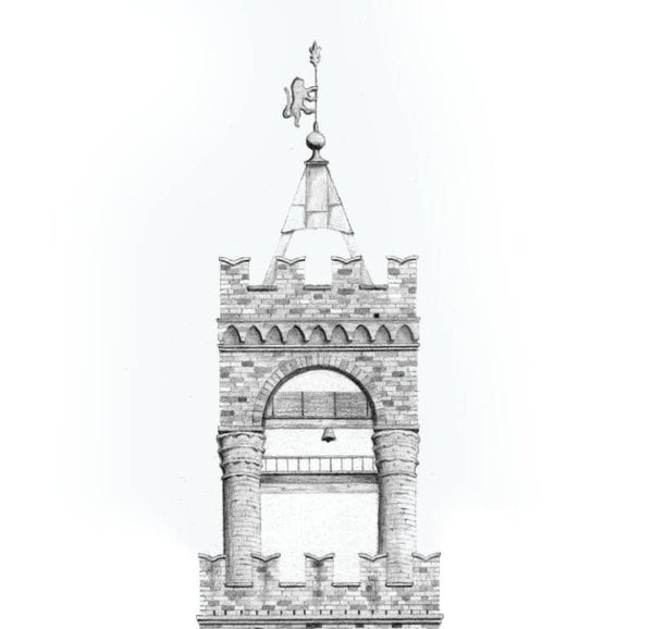 Poster van het Palazzo Vecchio in Florence. In 'Het Oude Paleis' zetelde eeuwenlang het stadsbestuur van Florence. De Torre di Arnolfo rust op de massieve onderbouw en torent met 95 meter hoog boven het Piazza della Signoria uit.